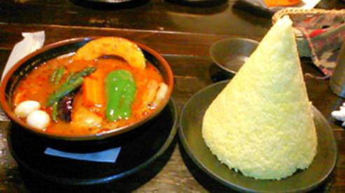 ごはんの自重で型崩れしないようにしっかりと固めてあり、スープカレー