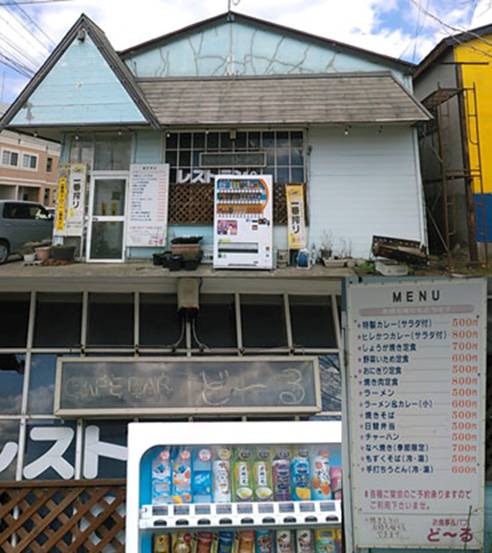 このどーる、外から覗く限りは自販機で隠れてしまって判別不可能な店名