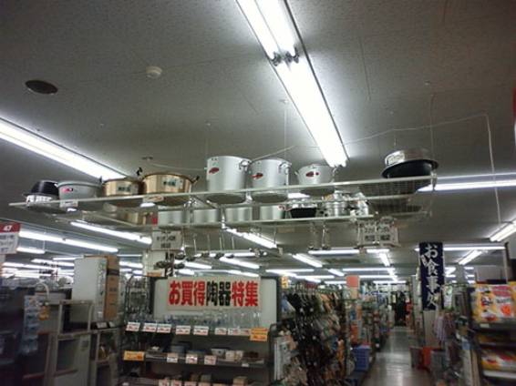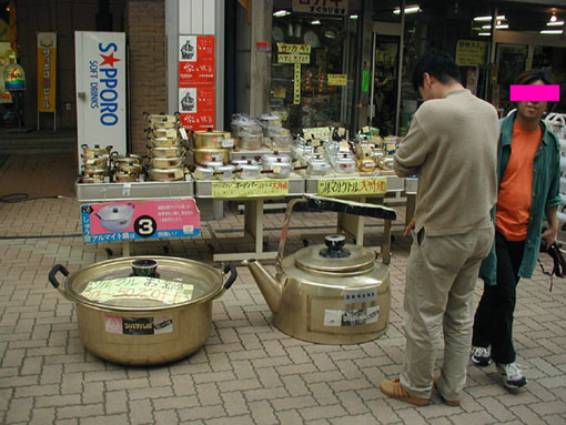 この大なべ&やかんの中に潜み、飛び出しざまに見ず知らずの買物客に向