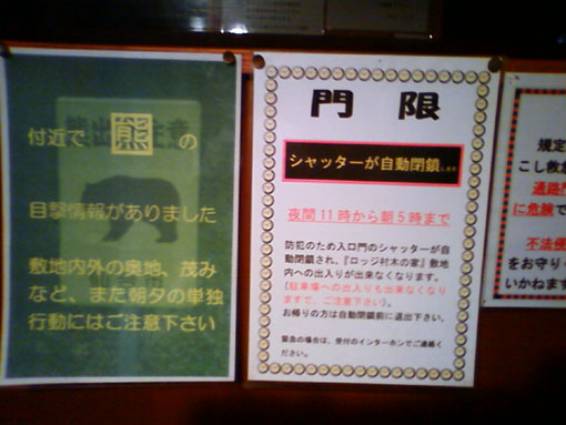 それがこの、仙台は秋保温泉にあるロッジ村『木の家』の張り紙だっ!