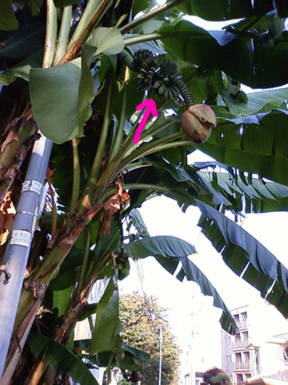 このバナナの木、幹は太く樹高も5mを優に超えており、すでに何度か